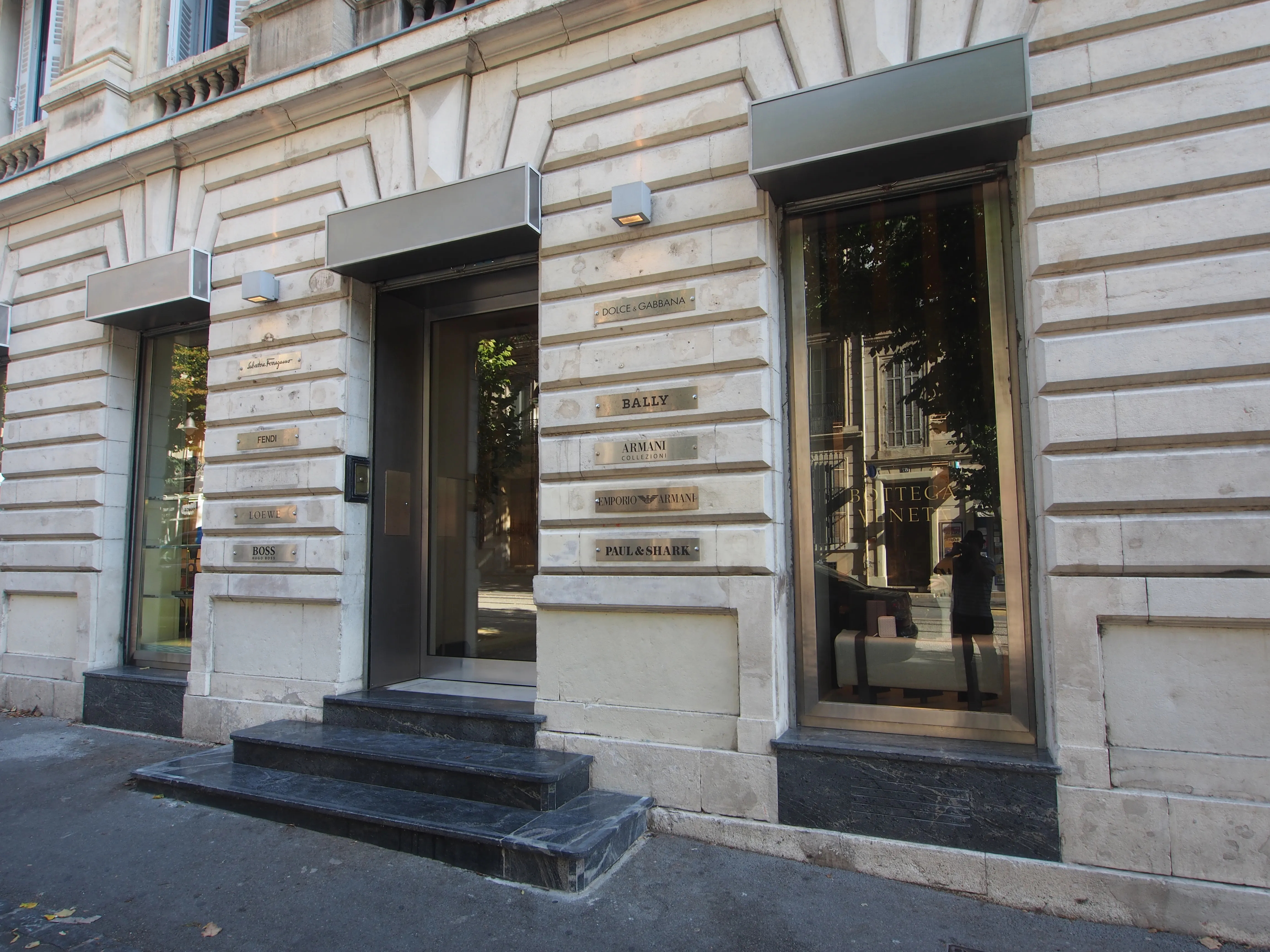 Aménagement à Marseille : création d’un escalier, comptoir d’accueil et façade pour un commerce au design moderne et accueillant.